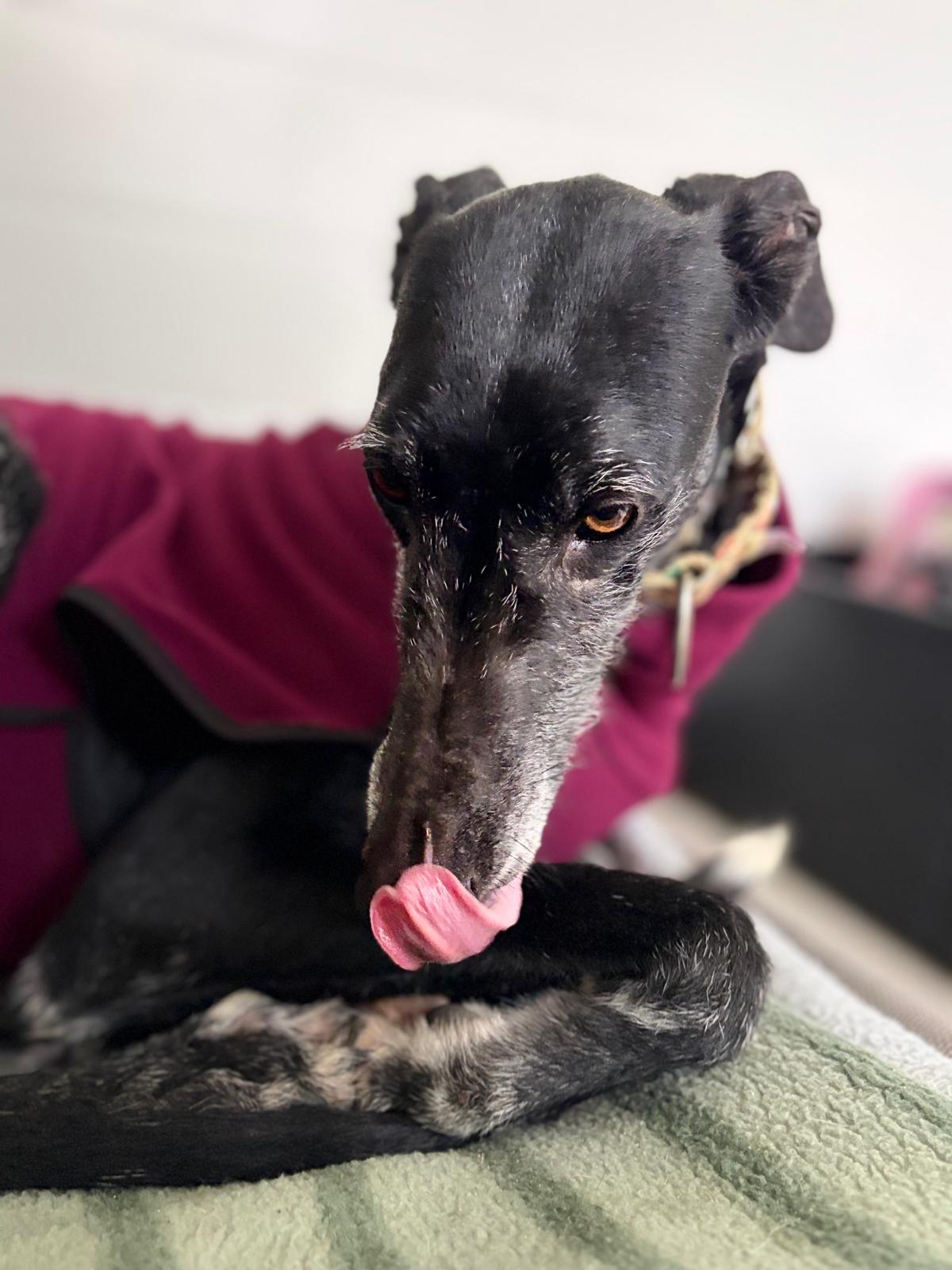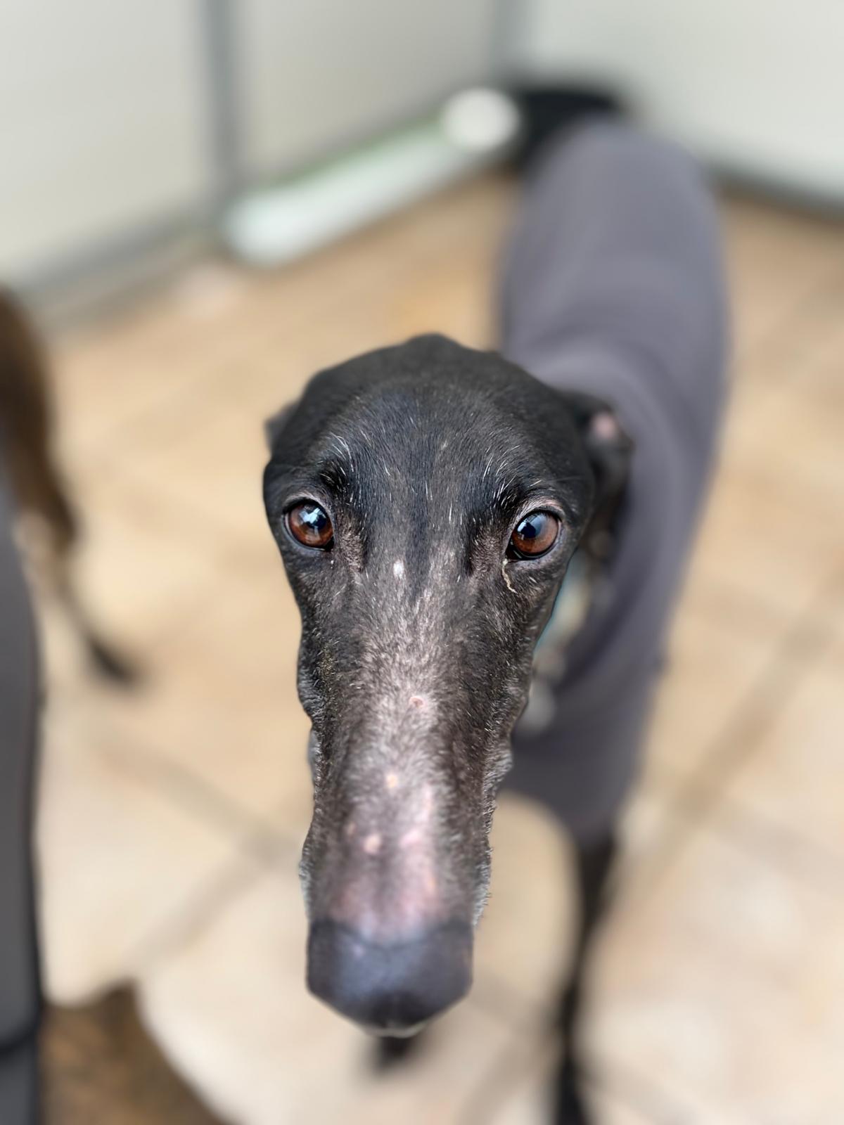 El corazón se nos rompe al pensar en la vida que ha tenido Socia… Basta con decir que su galguero la llamaba Sucio — "sucia". Llegó en un estado desgarrador: extremadamente delgada, con la piel descamada por el abandono y los dientes en muy mal estado para una perrita de solo 4 años. Y aun así, no ha perdido la fe en el ser humano. Esta galguita negra simplemente se queda quieta, esperando. En silencio, con paciencia… como si aún confiara en que nuestras manos le ofrecerán cariño, en lugar del castigo al que estaba acostumbrada. Nunca se adelanta, nunca exige. Solo espera… ser vista, ser querida. Soñamos con el día en que Socia deje atrás el suelo de cemento para descansar en un sofá cálido, y que nunca más tenga que buscar sobras en el suelo para alimentarse. Merece descubrir lo que es formar parte de una familia. Si le das una oportunidad, te lo prometemos: acoger a esta alma noble será una de las mejores decisiones de tu vida.