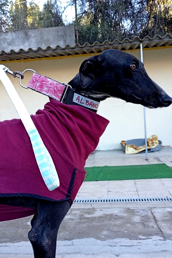 Albano es un galgo alto, elegante y precioso, de color negro azabache. Es joven, juguetón y muy sociable. Fue encontrado vagando por las calles de Madrid — abandonado, confundido y hambriento. Por suerte, unas personas de buen corazón lo recogieron y lo trajeron con nosotros y ahora está listo para comenzar una nueva vida en un hogar lleno de amor. Albano es sociable con todos los perros y siempre agradece recibir caricias. Es un alma hermosa por dentro y por fuera, y solo necesita a alguien que lo quiera tanto como él sabrá querer.