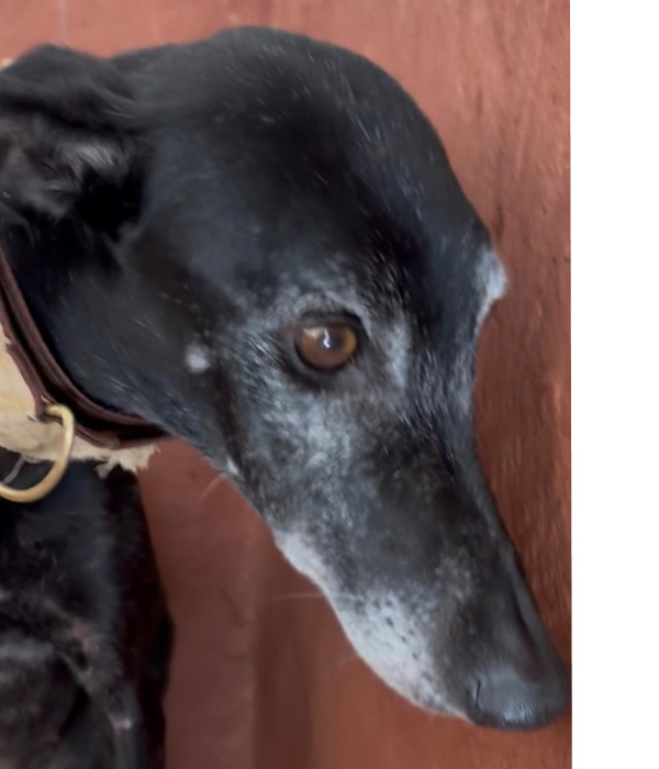 El corazón se nos rompe al pensar en la vida que ha tenido Socia… Basta con decir que su galguero la llamaba Sucio — "sucia". Llegó en un estado desgarrador: extremadamente delgada, con la piel descamada por el abandono y los dientes en muy mal estado para una perrita de solo 4 años. Y aun así, no ha perdido la fe en el ser humano. Esta galguita negra simplemente se queda quieta, esperando. En silencio, con paciencia… como si aún confiara en que nuestras manos le ofrecerán cariño, en lugar del castigo al que estaba acostumbrada. Nunca se adelanta, nunca exige. Solo espera… ser vista, ser querida. Soñamos con el día en que Socia deje atrás el suelo de cemento para descansar en un sofá cálido, y que nunca más tenga que buscar sobras en el suelo para alimentarse. Merece descubrir lo que es formar parte de una familia. Si le das una oportunidad, te lo prometemos: acoger a esta alma noble será una de las mejores decisiones de tu vida.